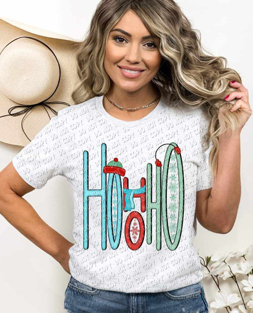Ho ho ho (blue, red, green font with hat scarf and earmuffs) 9224 DTF TRANSFER