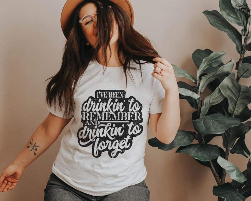 I've been drinkin to remember and drinkin' to forget BLACK screen print transfer