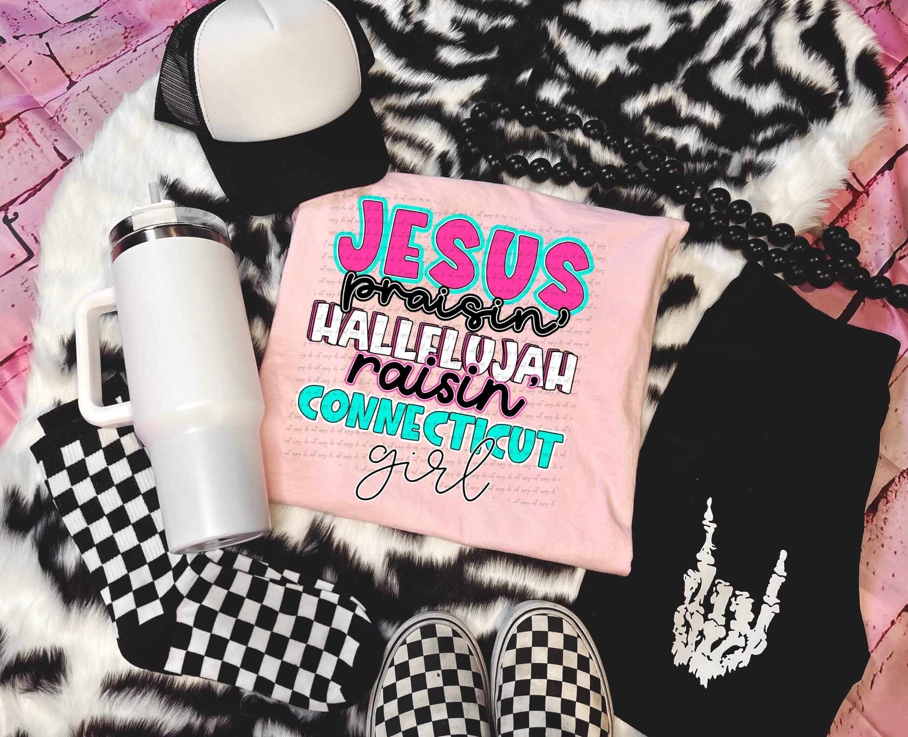 Jesus praisin hallelujah raising Connecticut girl 31219 DTF transfer