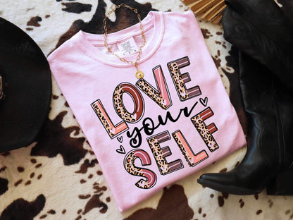 Love yourself half leopard font 26638 DTF transfer