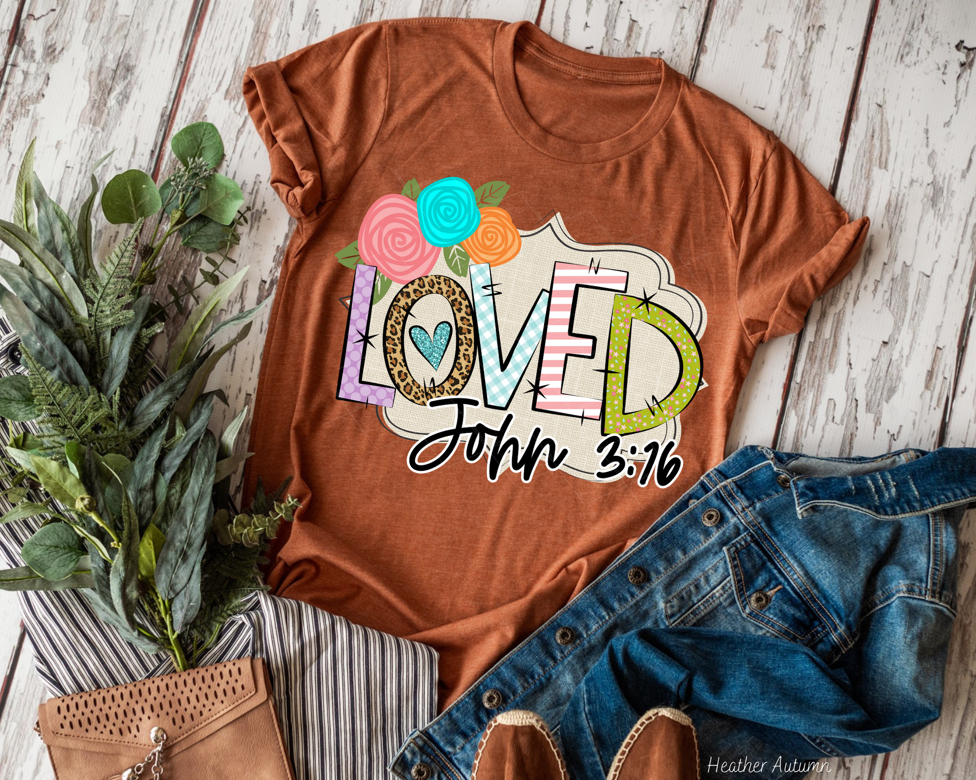 Loved John 3:16 Floral Frame 112650 DTF TRANSFER