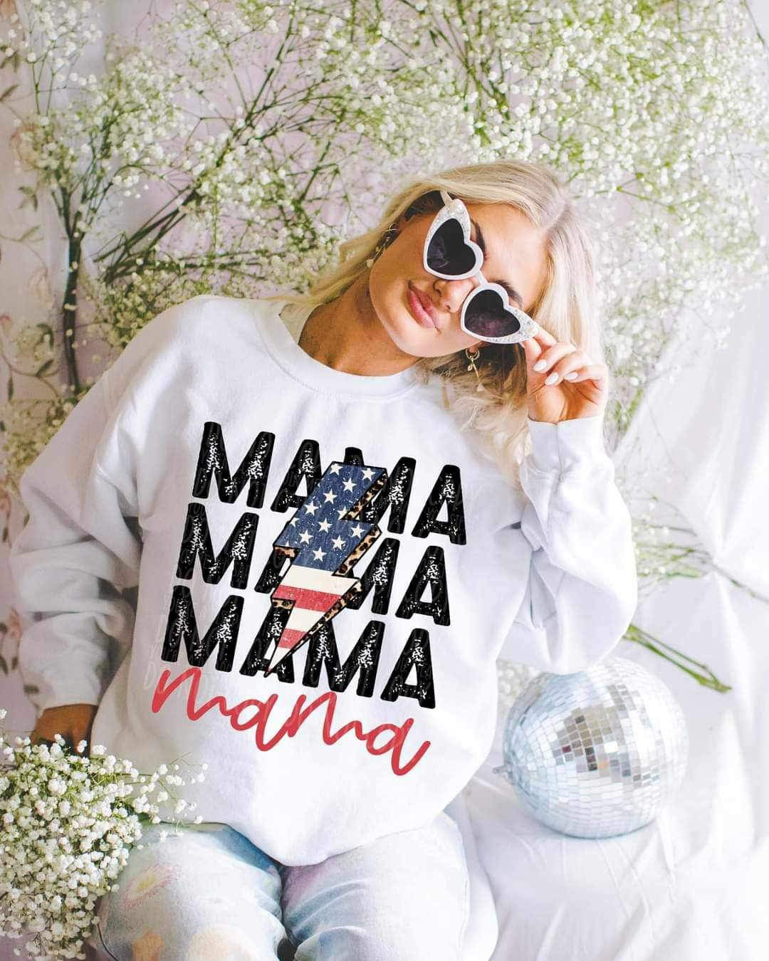 Mama stacked American flag lightning bolt (LYTTLE) 21163 DTF transfer