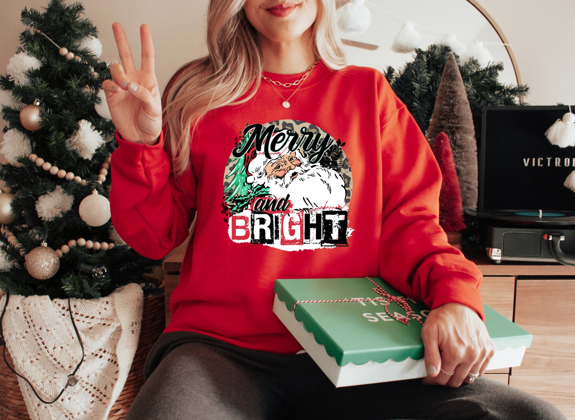 Merry and bright (Santa and leopard circle) HIGH HEAT screen print transfer