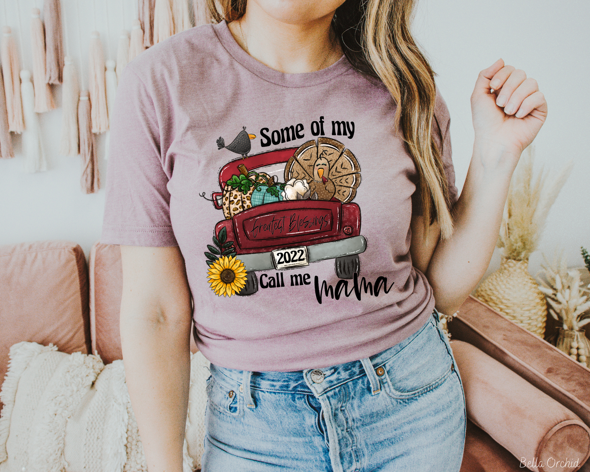 My Greatest Blessings Call Me Mama Red Truck Sunflower (Black Font) 375 DTF TRANSFER