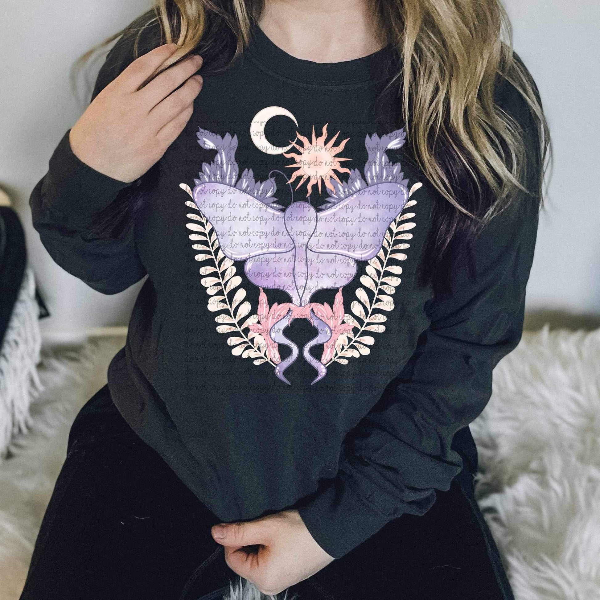 Purple moth with sun and moon (CMLD) 15723 DTF Transfers