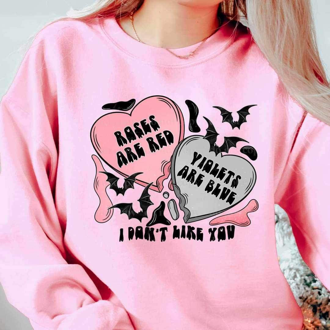 Roses are red violets are blue i dont like you (hearts and bats) 16668 DTF Tranfer