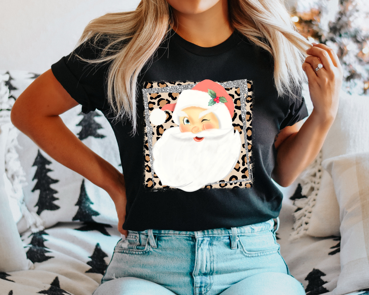 Santa Leopard Silver Glitter Pink Hat Holly 1037 DTF TRANSFER