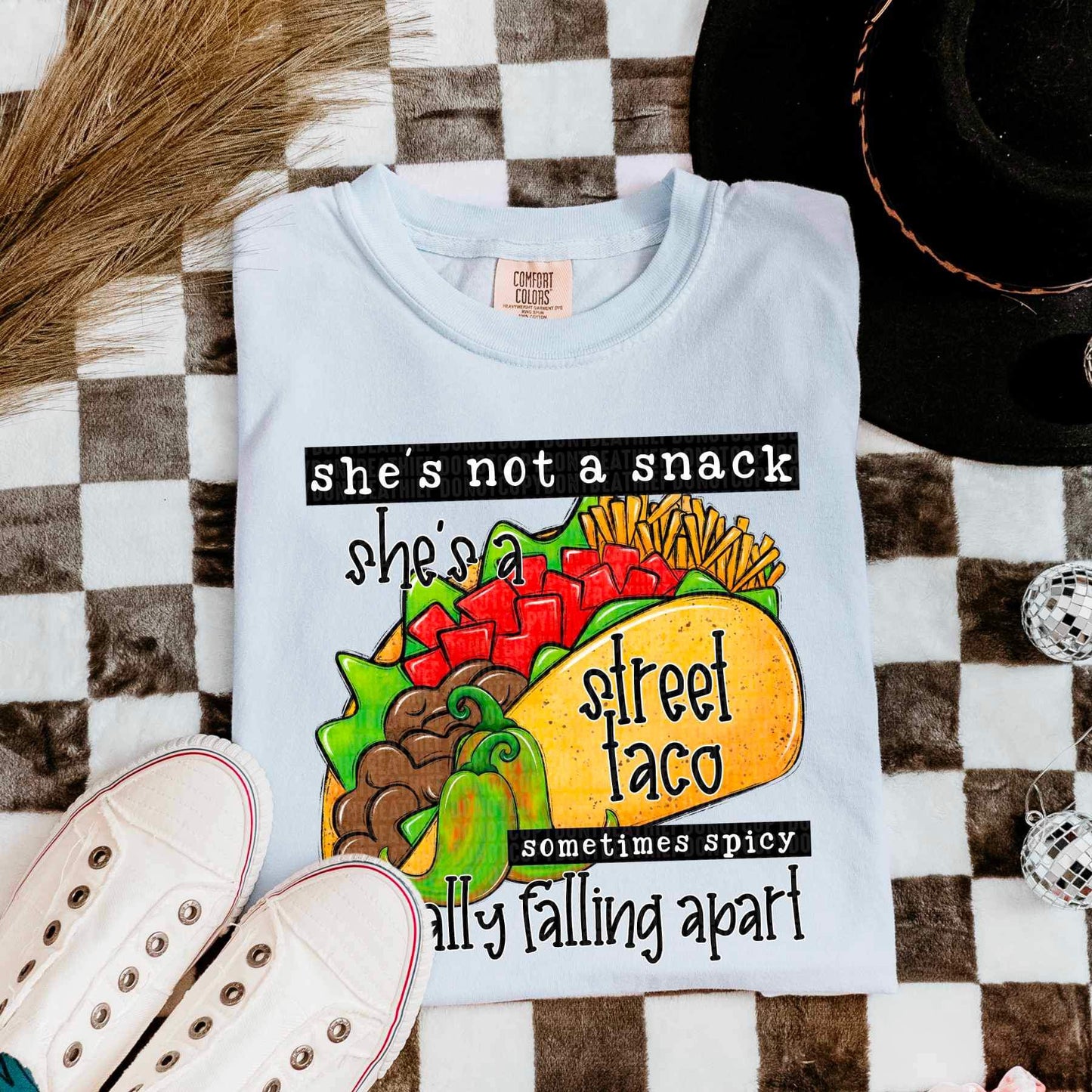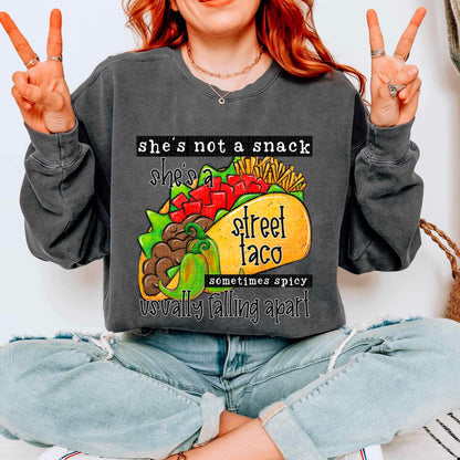 Shes not a snack shes a street taco sometimes spicy usually falling apart 21755 DTF transfer