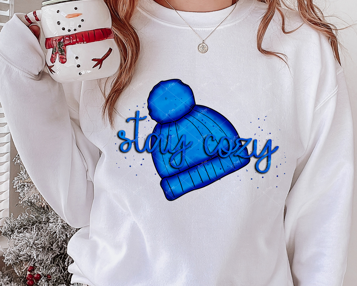Stay cozy (bright blue winter hat) 1603 DTF TRANSFER