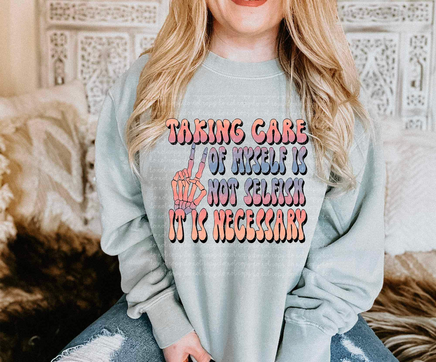 Taking care of myself is not selfish it is necessary (colorful with skellie peace) 9270 DTF TRANSFER m