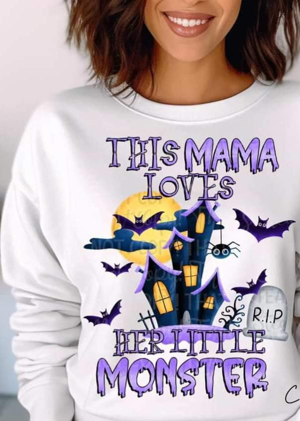 This mama loves her little monster (haunted house with bats) 11344 DTF TRANSFER