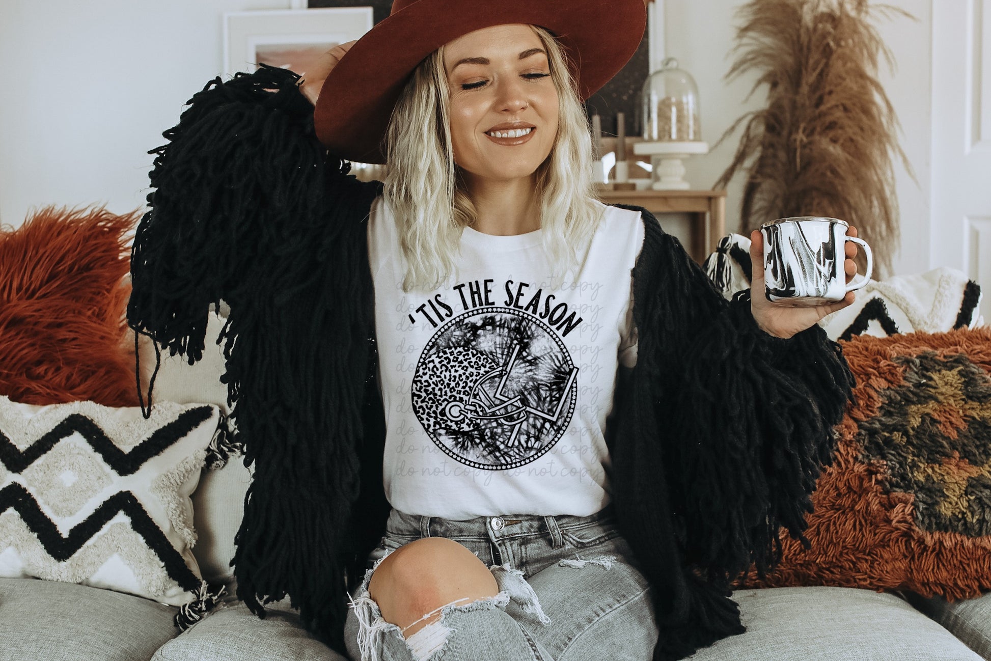 Tis the season (football helmet/goal/leopard) BLACK screen print transfer