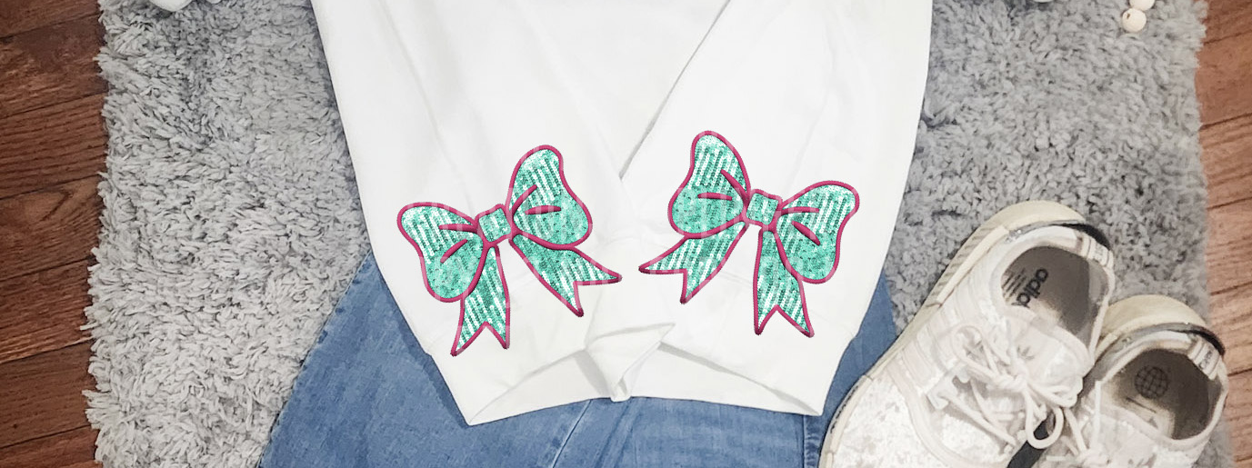 Turquoise And Pink Faux Embroidery Mascot Bows 74059 DTF Transfer