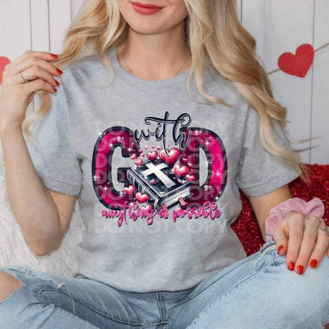 With God all things are possible pink with bible 17514 DTF TRANSFERe
